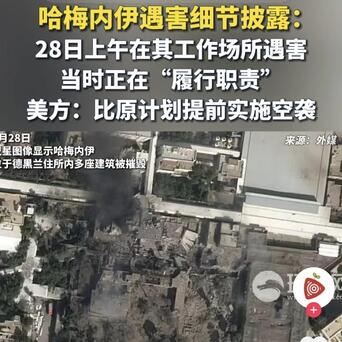 媒体报道事发时刻,哈梅正在召开军政会议,而且会议时间提前40分钟!诡异的是美以轰炸也随之提前,准确到分秒不差,结果一击命中!