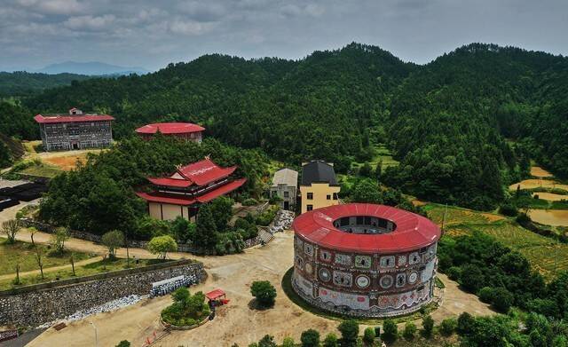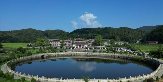 村内的建筑以唐宋风格为主,亭台楼阁错落有致,小桥流水贯穿其中。雨天时,整个村子被雾气笼罩,远处的山峦若隐若现,近处的屋檐滴着水珠,石板路泛着青光——这样的场景,随便一拍都是水墨画。