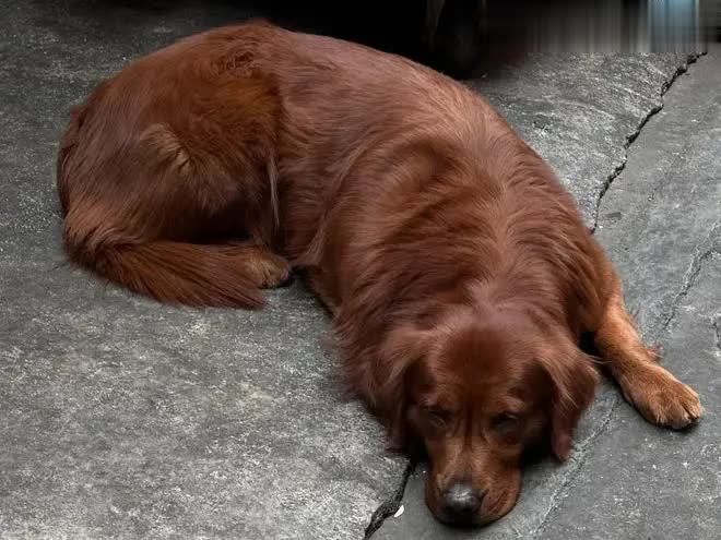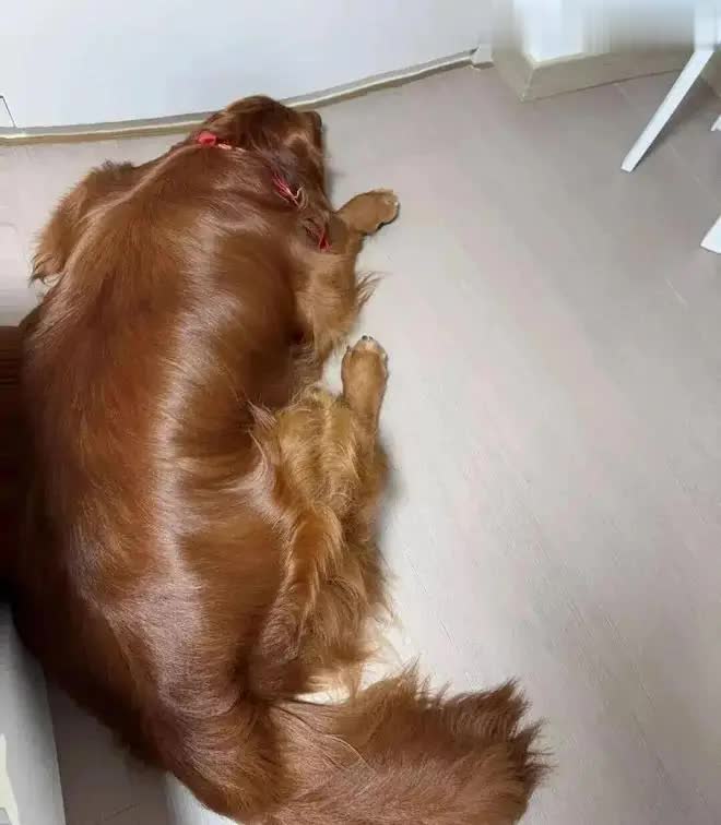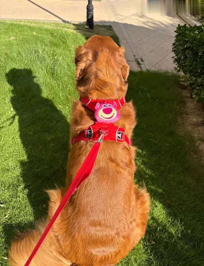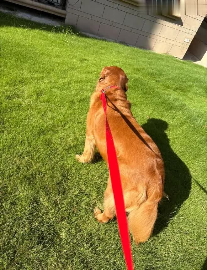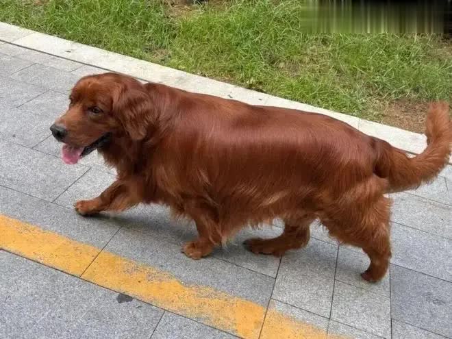 而它最引人注目的,莫过于那一身如秋日枫叶般绚丽的被毛——这种深棕红的毛色在金毛犬中实属罕见,仿佛把最醇厚的秋意披在了身上。